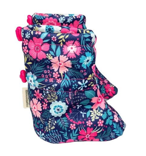 Capáčky se dají utáhnout okolo nožičky díky gumě a brzdičce nahoře a nad kotníkem, aby capáčky nepadaly, zároveň při povolení gumy se dobře navlečou na nožičku.