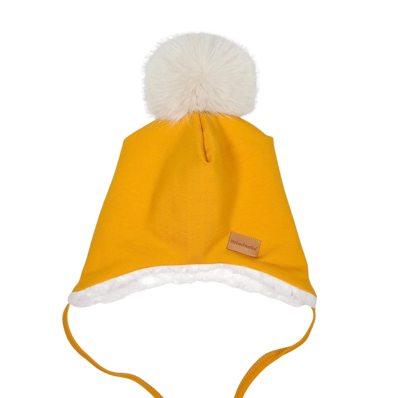 Dětská čepice "Ušanka" s bambulí - Hořčičná