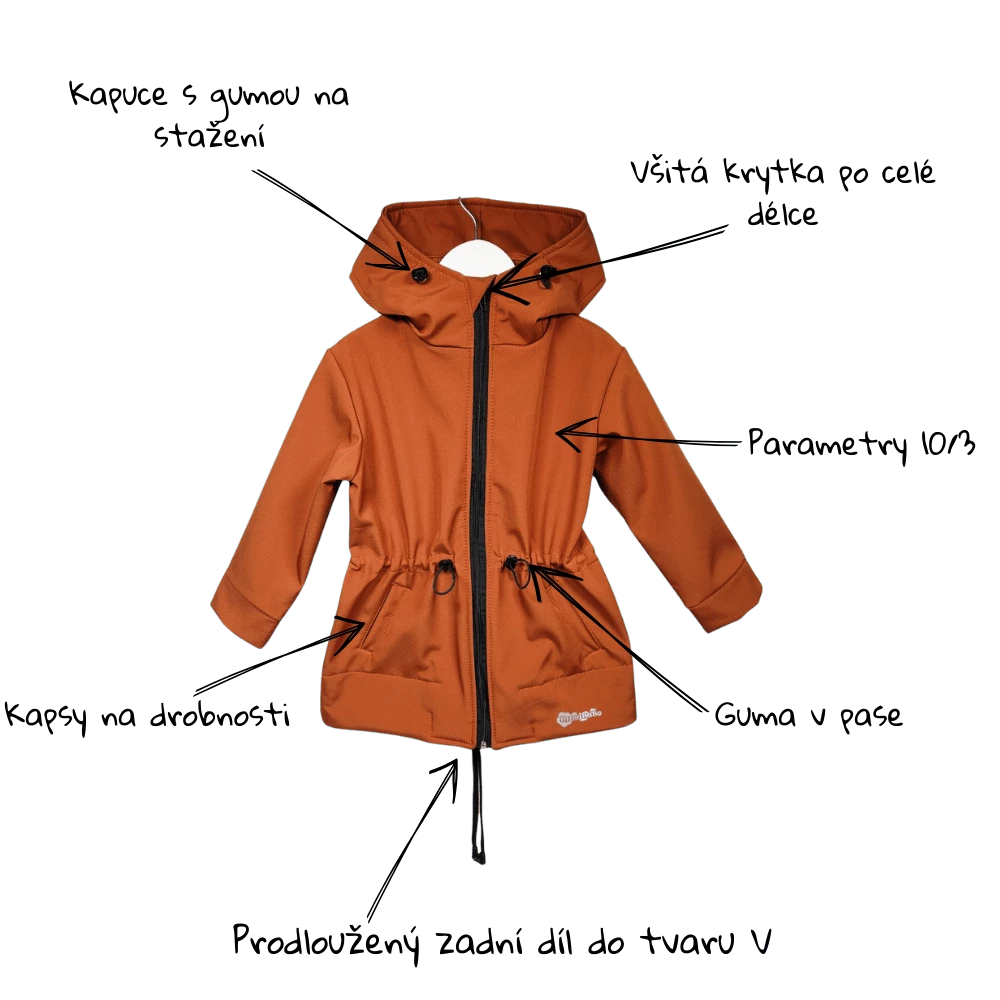 Dětská softshellová parka se dokonale hodí do podzimního počasí, díky skvělým vlastnostem softshellu, který neprofoukne, nepromokne a je prodyšný.