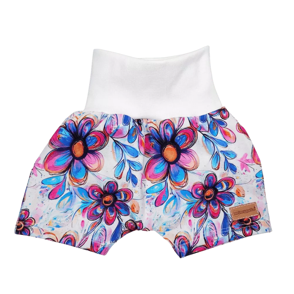 Baggy kraťásky jsou ideální volbou pro nejmenší děti, které nosí plínku, jelikož jsou ušity tak, aby měly maximální pohodlí. Náplet v pase nikde netlačí, je dostatečně pružný a zároveň má rostoucí efekt, takže s nápletem i déle vydrží.