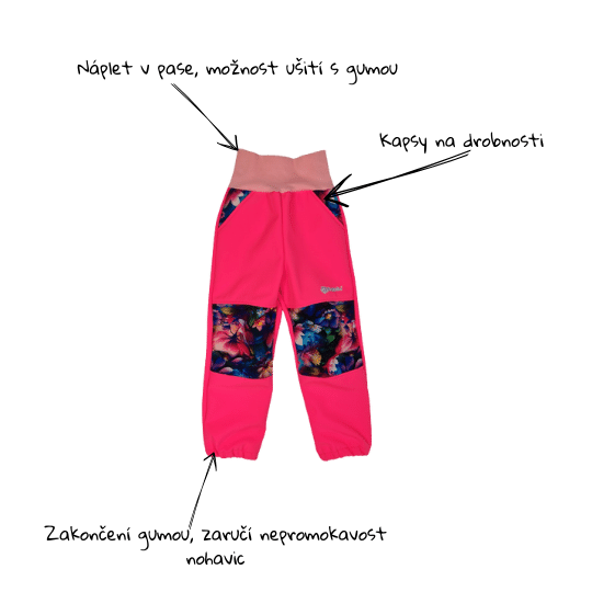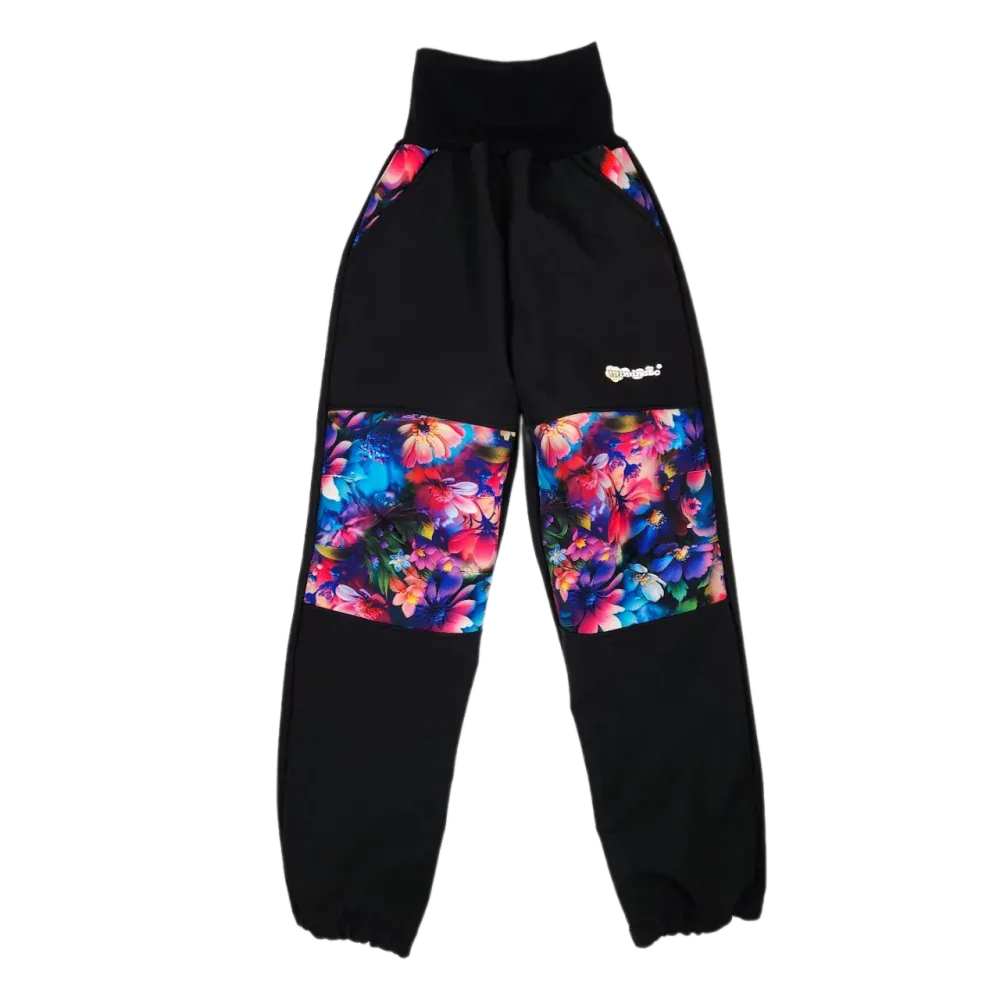 Dětské softshellové kalhoty - pohádkové kytičky s černou