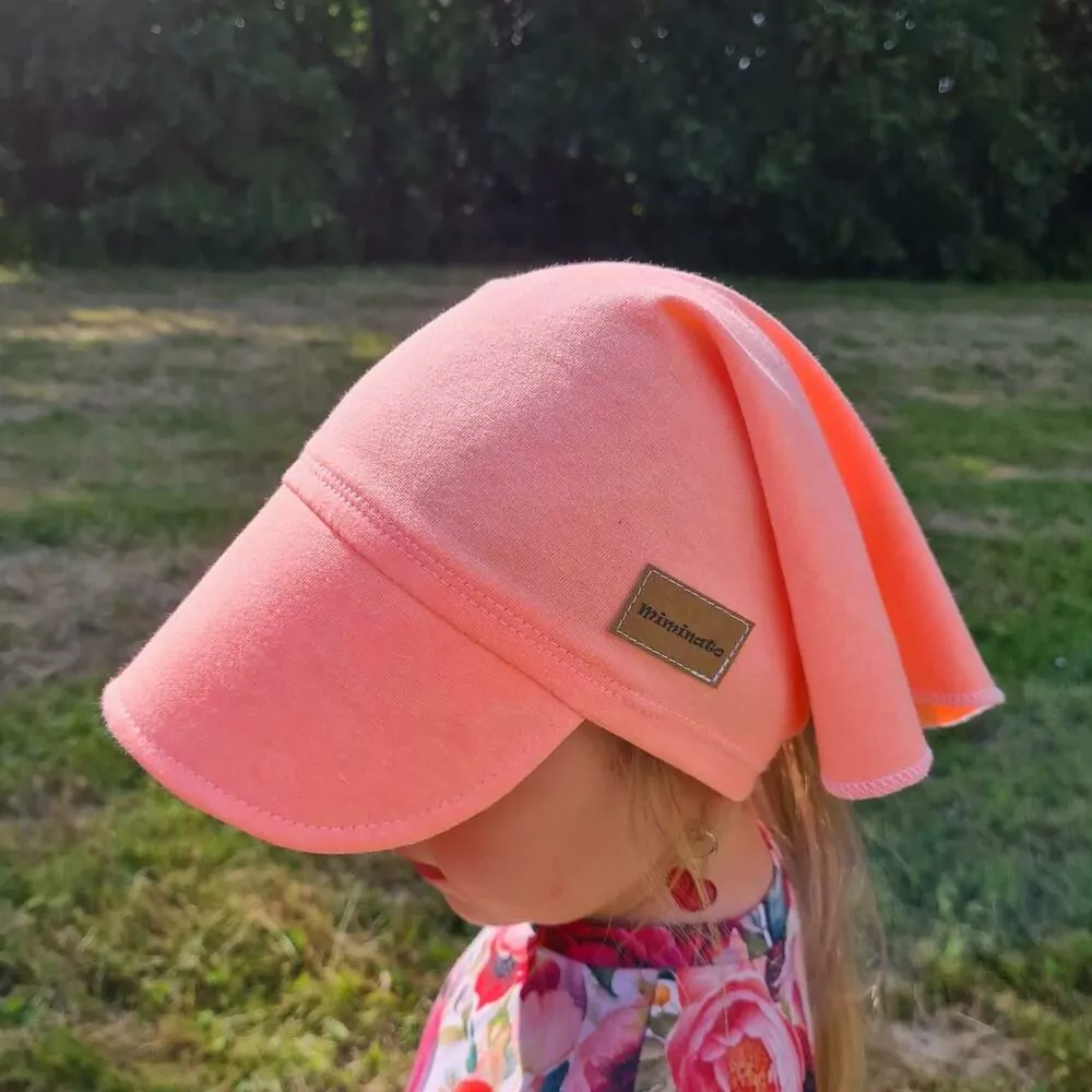 Dětský šátek na hlavu s kšiltem - neonově oranžový