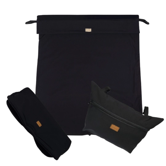 Sada na kočárek - rukávník, taška, nepadací dečka černá