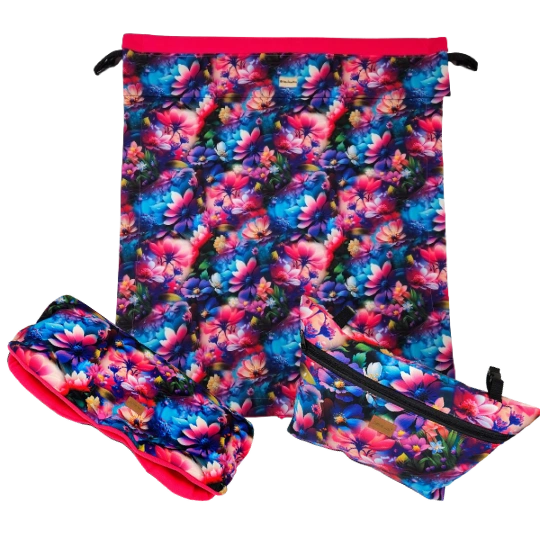 Sada na kočárek - rukávník, taška, nepadací dečka pohádkové kytičky