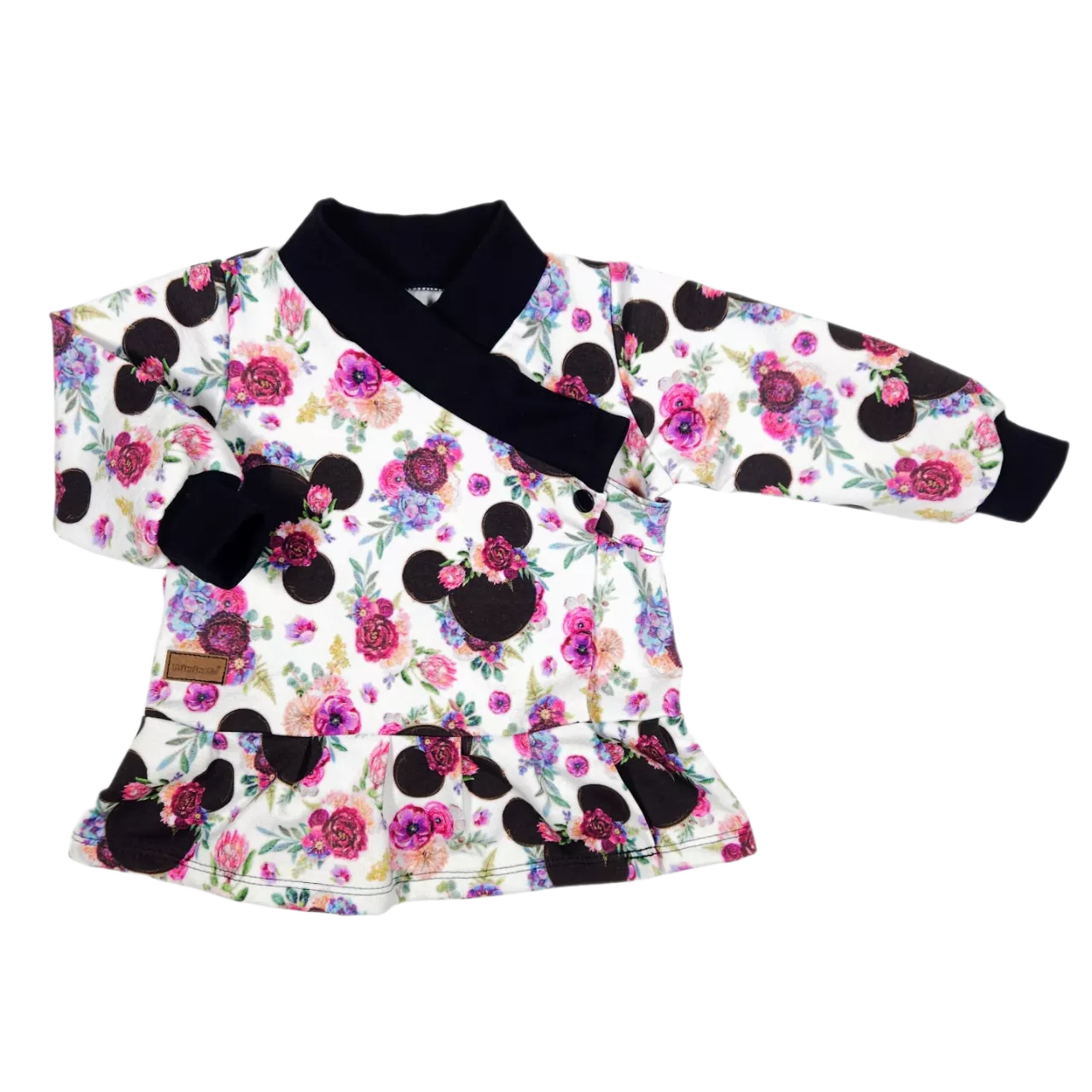 Zavinovací kojenecká mikina "kabátek" - Mickey s kytičkami s volánky